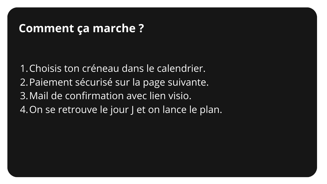 Places limitées chaque mois pour garantir la qualité du coaching